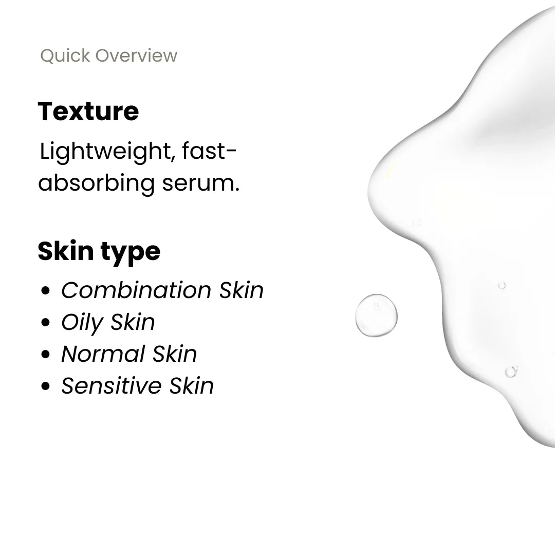 hyaluronic acid serum is suitable for all skin types because it hydrates without clogging pores. It is especially effective for dry and dehydrated skin that needs moisture, oily and acne-prone skin that still requires lightweight hydration, and mature skin that needs plumpness and smoother texture.