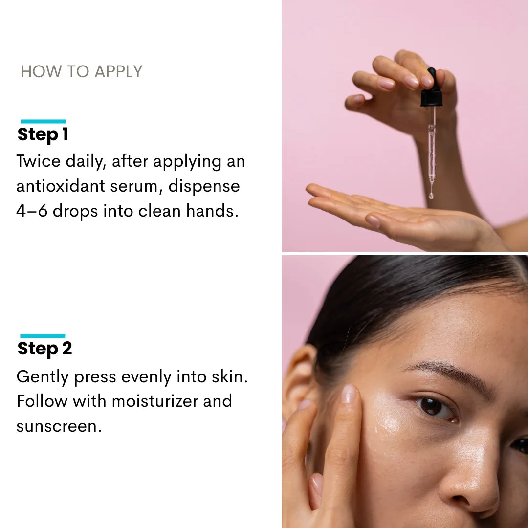 - ⦿ Use twice daily, morning and evening. Always wear sunscreen during the day.